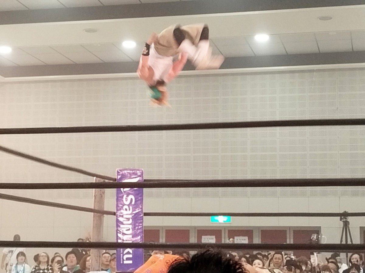 ビッグマッチ初参戦のヴァンヴェール・ジャック選手のシューティングスタープレスに会場騒然!