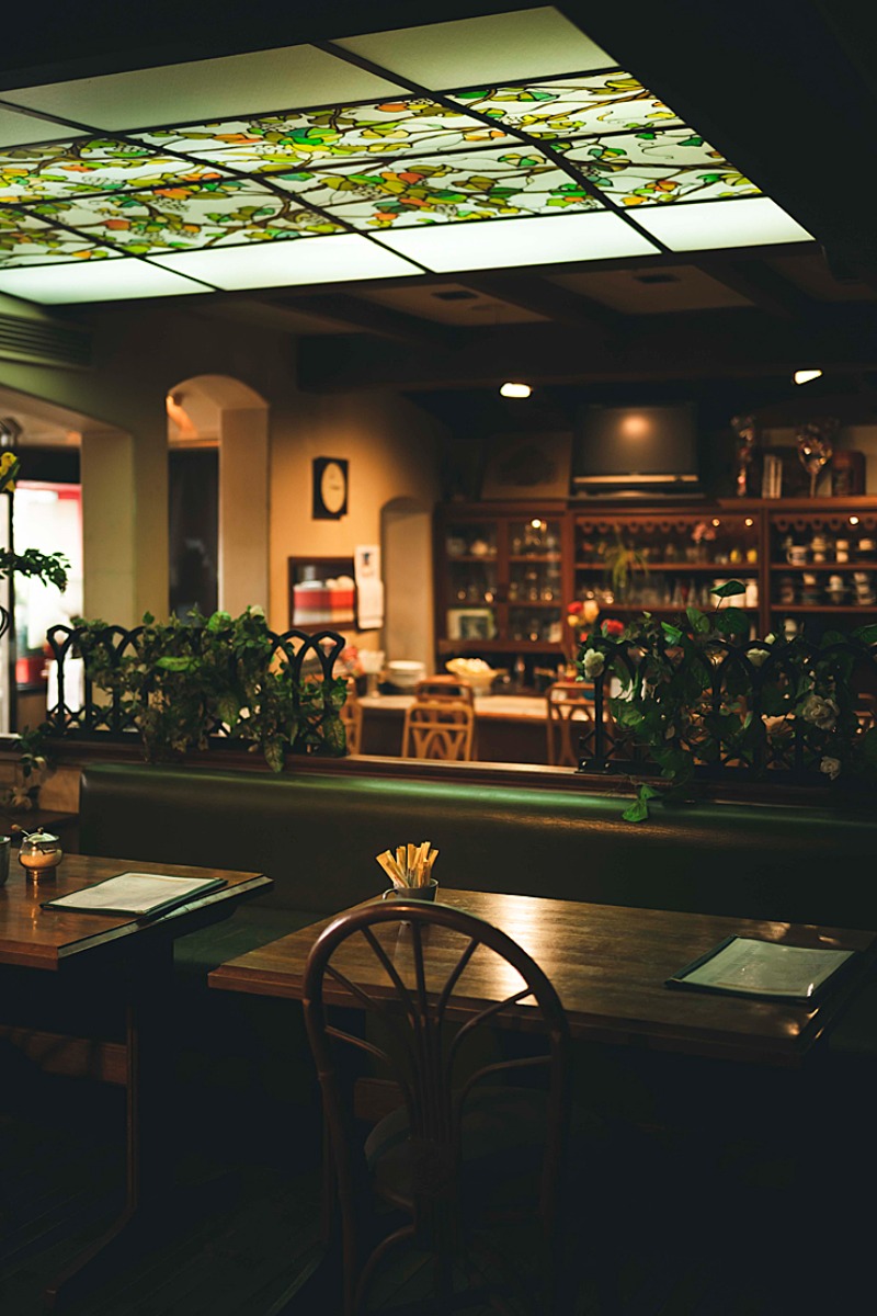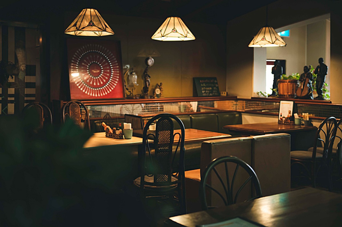 料理やサイフォンで淹れたコーヒーを味わいつつ、昭和レトロの雰囲気に浸る。