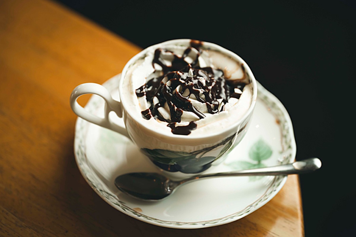 ほろ苦さが残るコーヒーに、ホイップクリームとチョコレートソースがたっぷり。