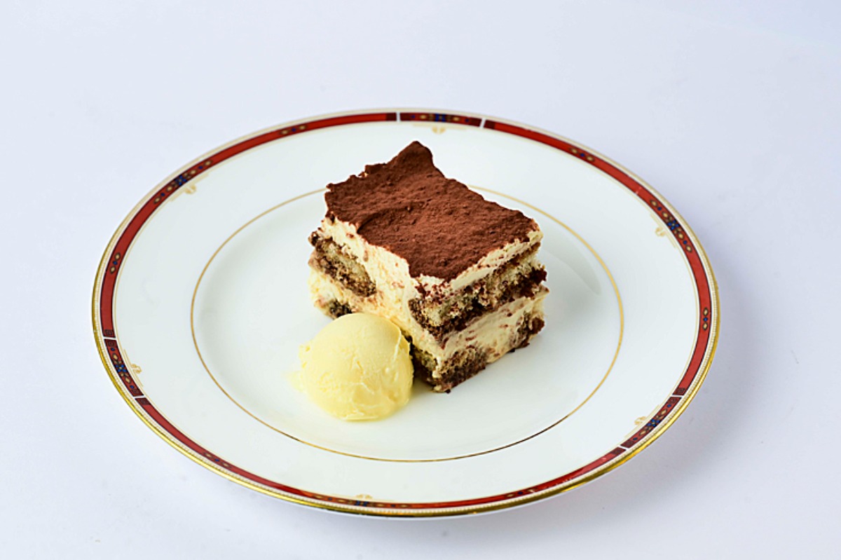 なめらかな舌触りのマスカルポーネと、ほろ苦いエスプレッソが絶妙なバランスのティラミスには、バニラアイスを添えて。