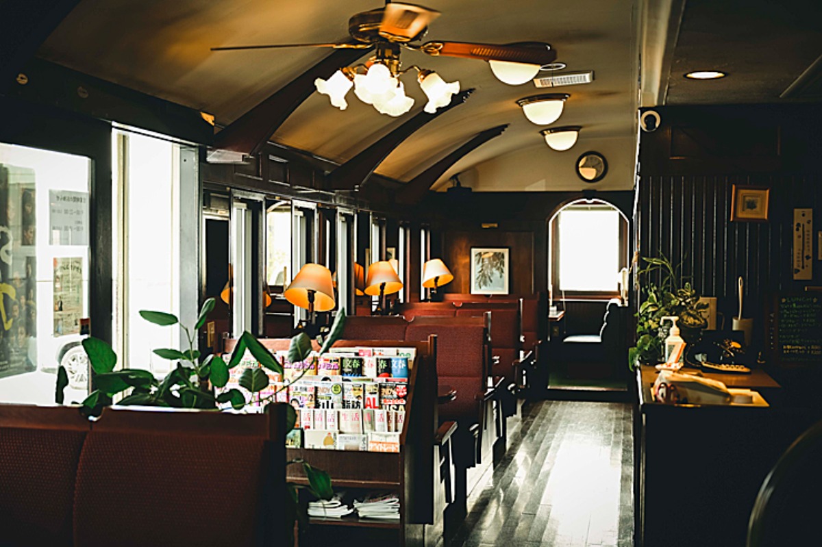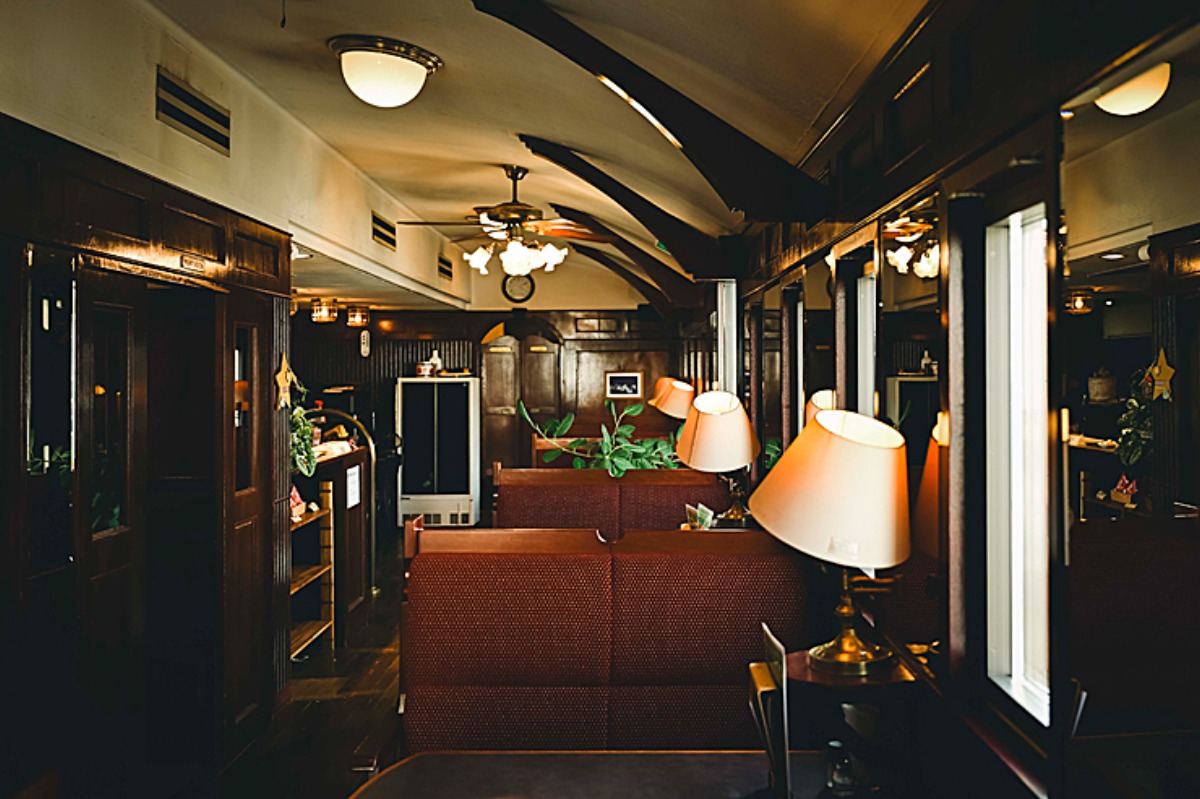 列車の車両を模した店内に入るとカントリーミュージックが流れる、アメリカの古き良き喫茶店のような空間。