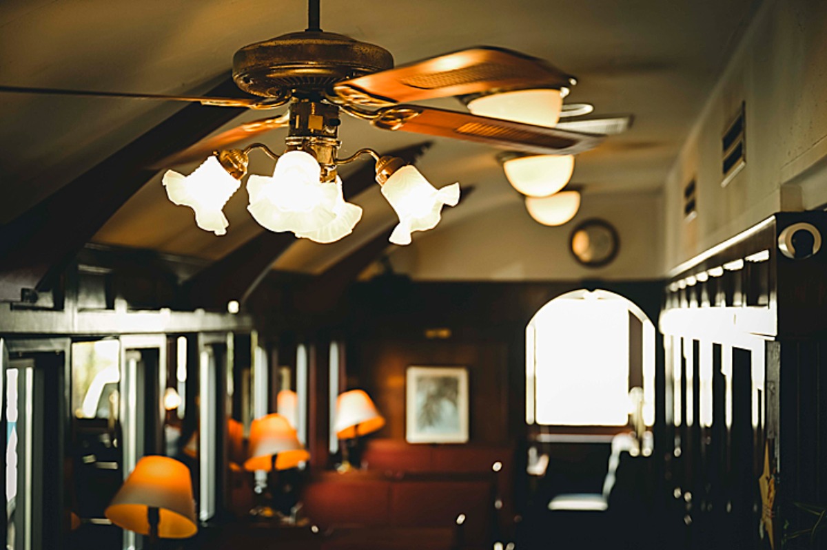 木製のシーリングファンがついたレトロなライトが、店内をやさしく照らす。
