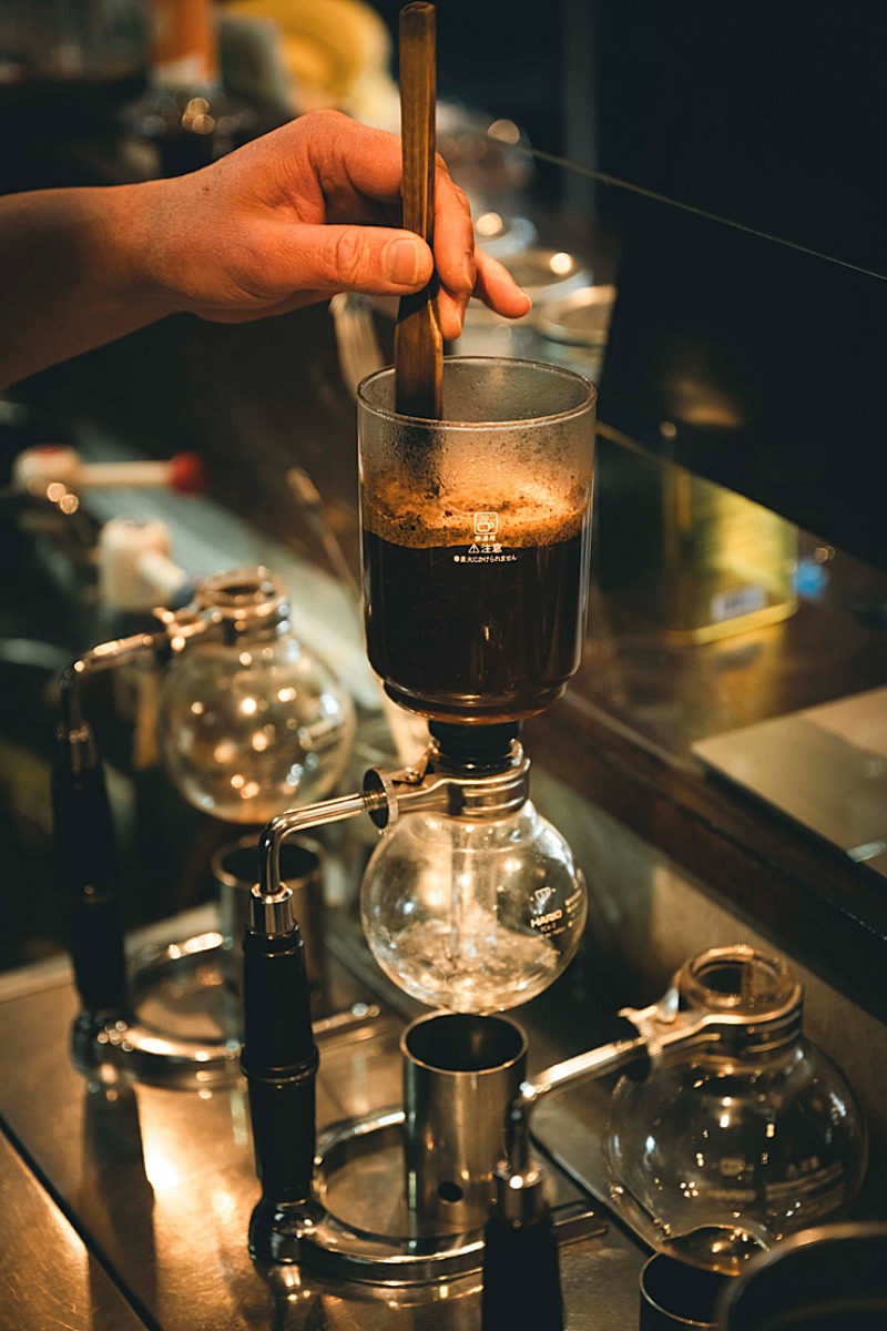 コーヒーは、注文が入ってからサイフォンで淹れる。