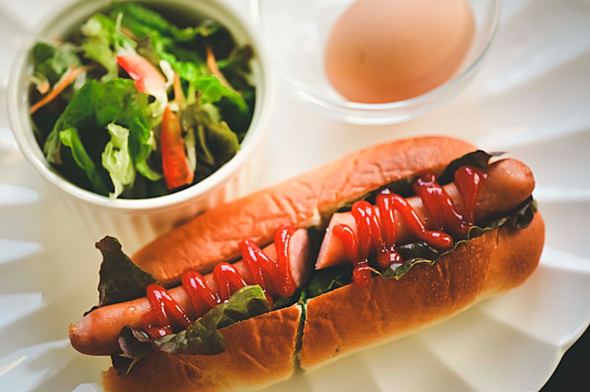 老舗「月原ベーカリー」のパンを使った、ソーセージのジューシーな肉汁が楽しめるホットドック。