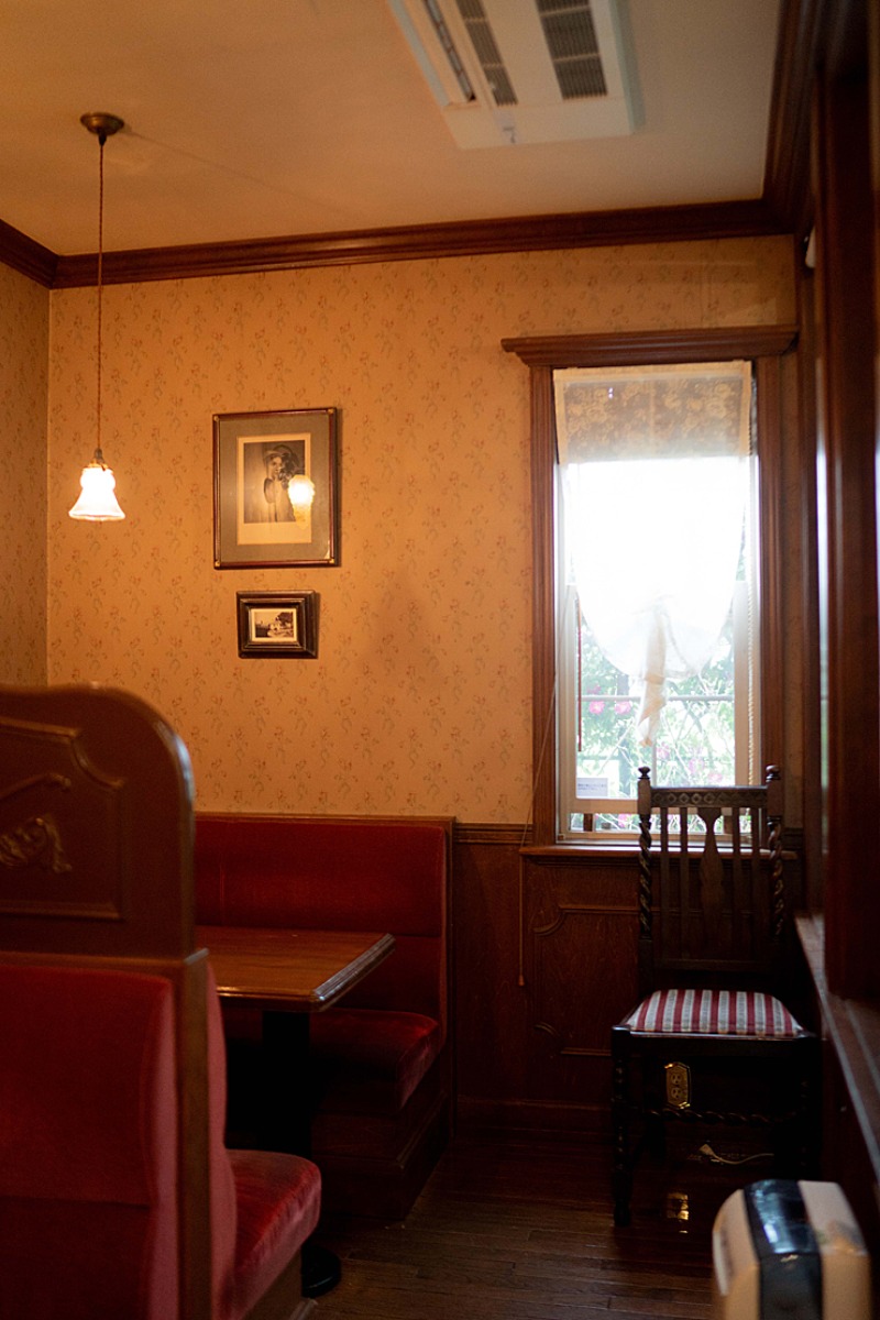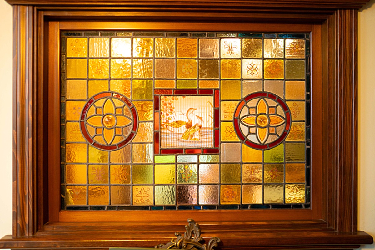 入り口を入ってすぐのところにあるステンドグラスをはじめ、古き良き装飾が空間に彩りを添える。