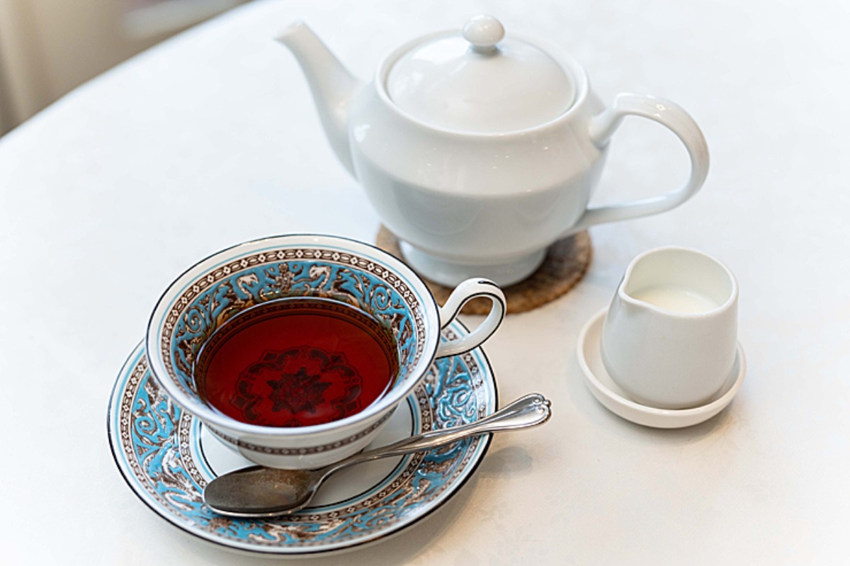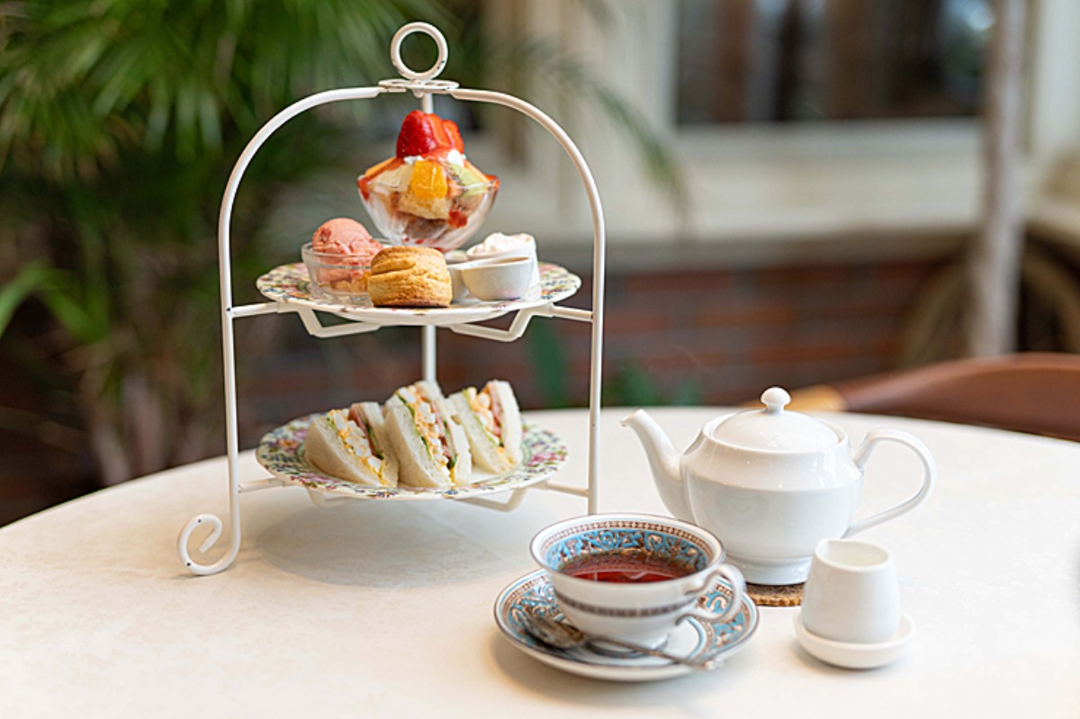 なかでも人気のパティオ席では、バラ咲く庭を眺めながら優雅なアフタヌーンティーを楽しめる。種類豊富な紅茶や手作りスイーツ、終日注文できるモーニングも評判。