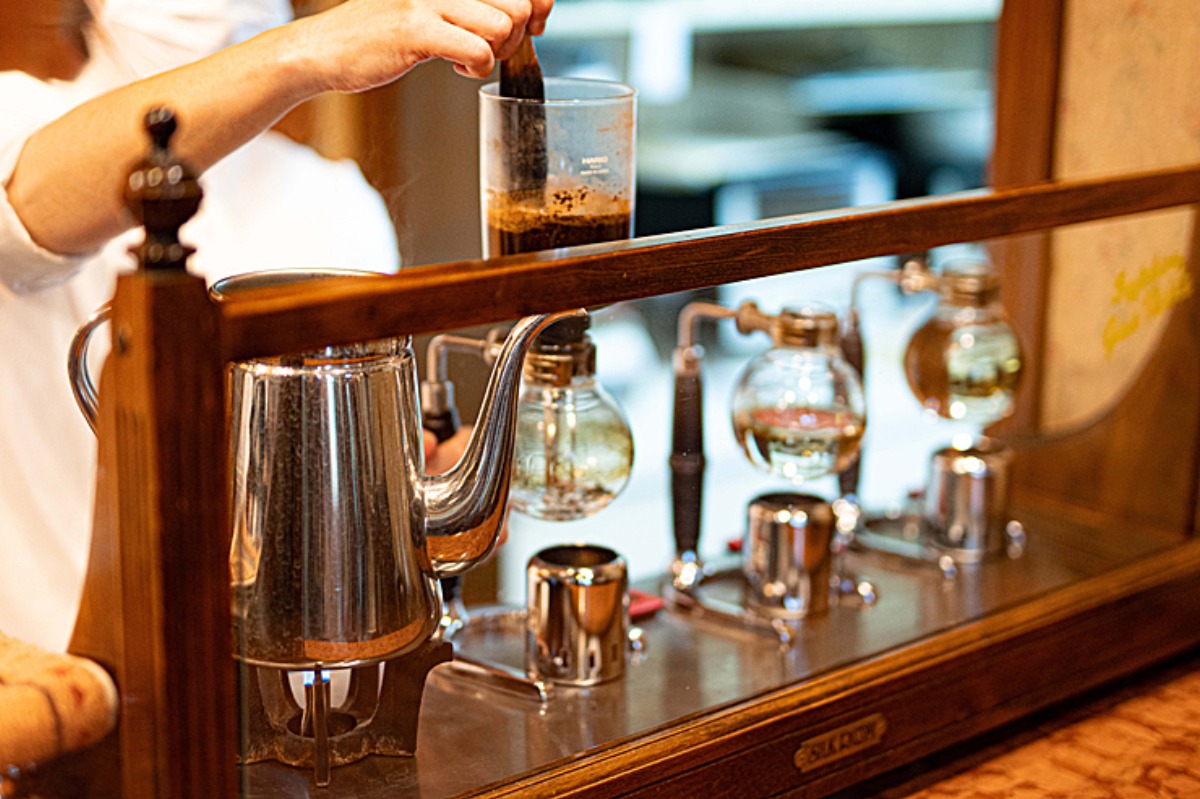 カウンター席に座ると、サイフォンでコーヒーを淹れる様子が目の前で見られる。