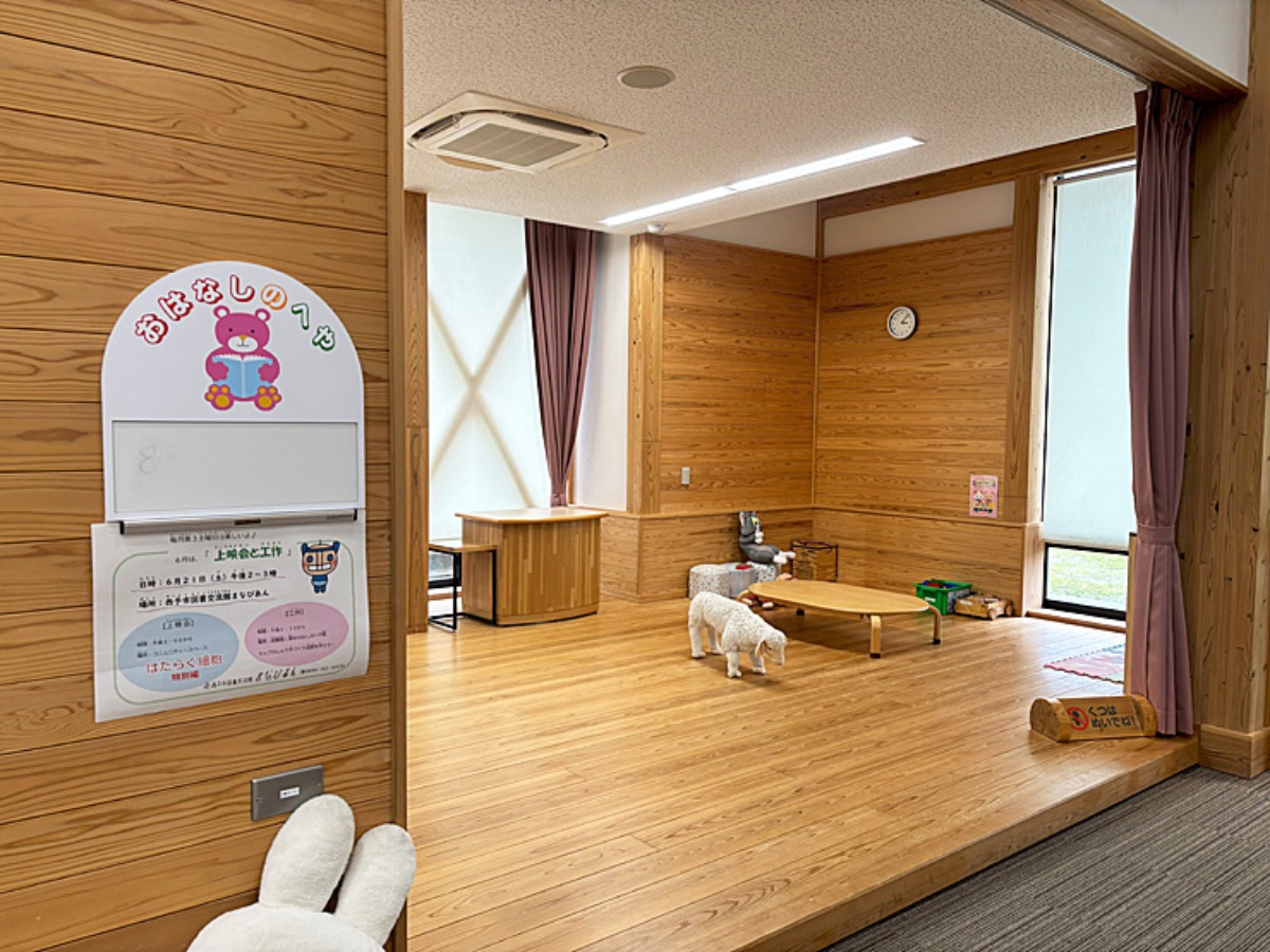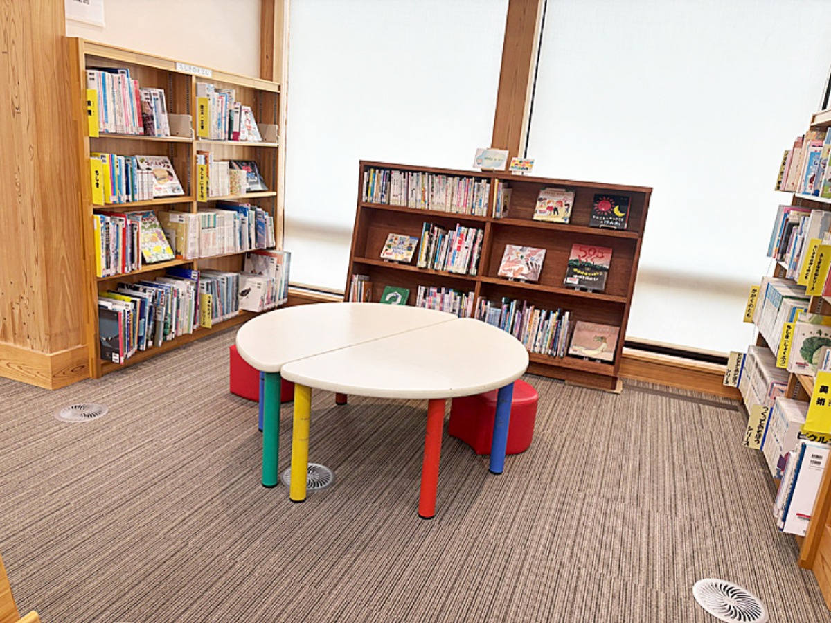 こちらは、絵本に囲まれたスペースに小さめのテーブルと椅子が並んでいました。