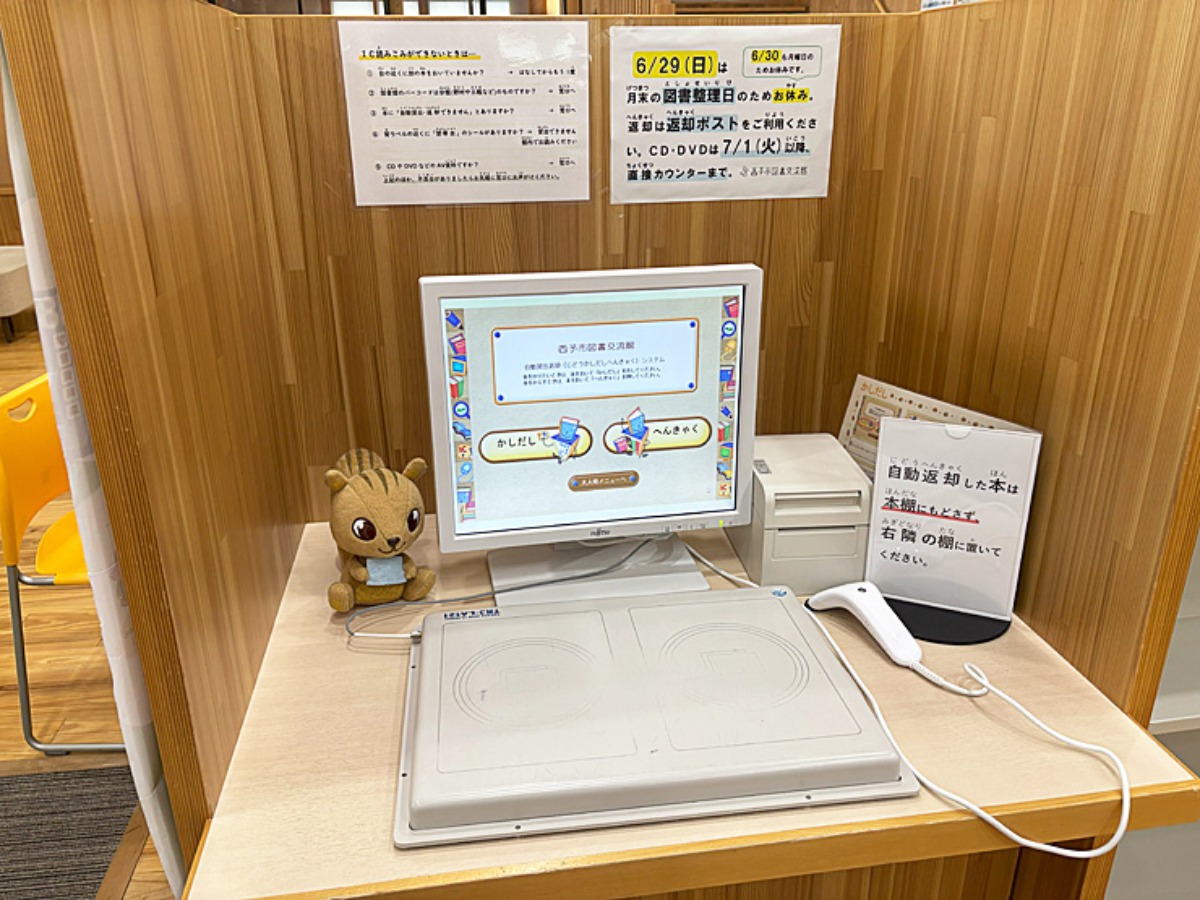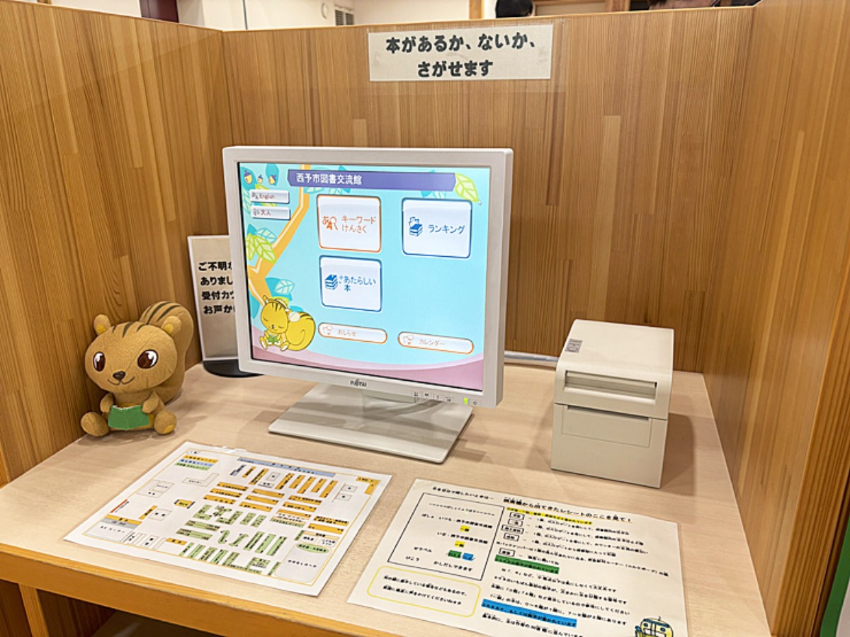 借りたい本が決まったら、専用パソコンから手続きを進めます。