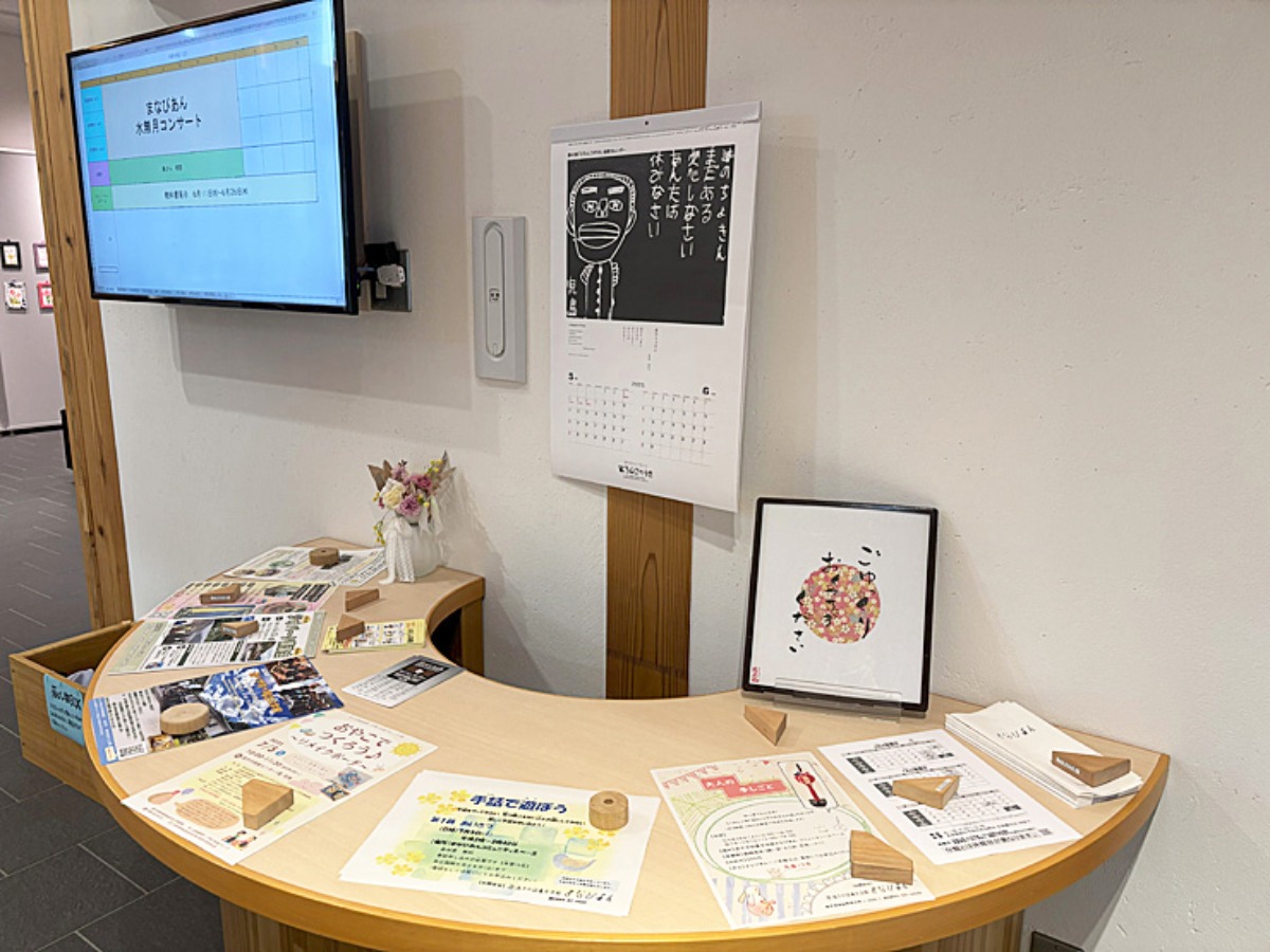 今後のイベントを紹介するチラシがたくさん並べられていて目を引きます。