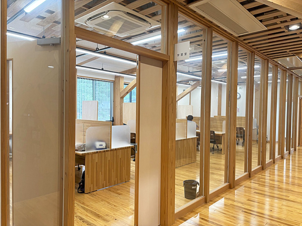 入り口を通り過ぎると、木材のやさしい香りと、開放的な落ち着いた空間が広がり、穏やかな気分になります。