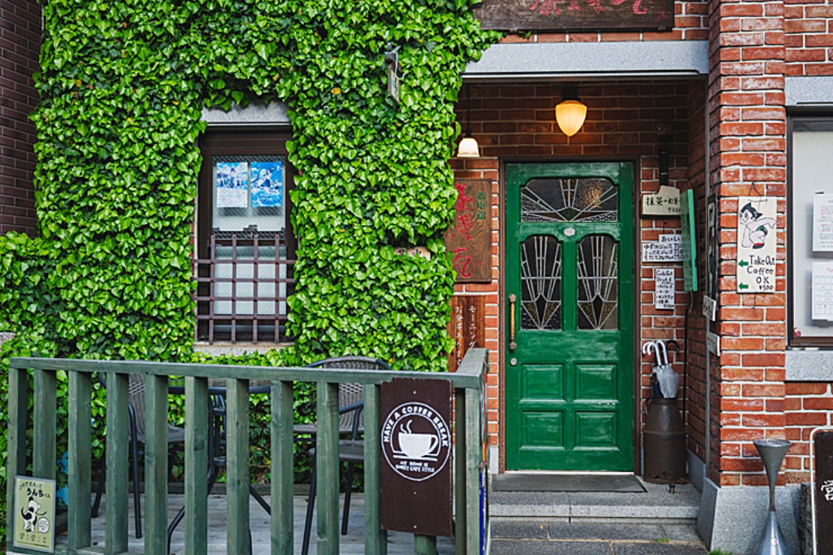 店名の由来でもある赤い煉瓦造りの建物に、丁寧に手入れされたツタが青々と茂るレトロな外観が目印。