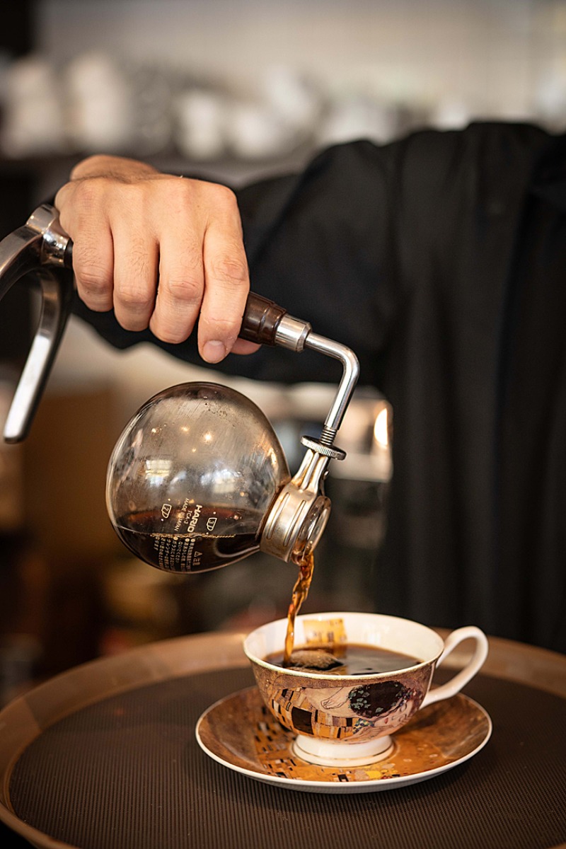 サイフォンで丁寧に淹れた、香り高い一杯。