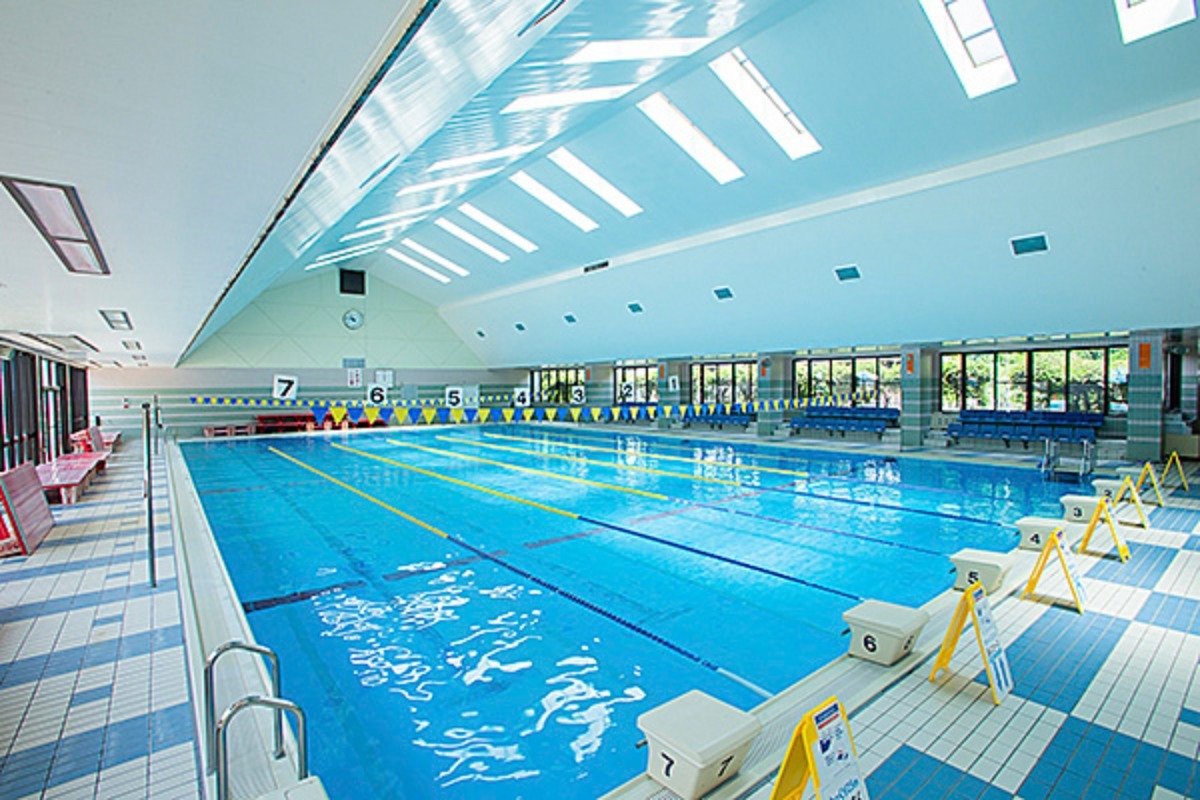 メインの温水プール(屋内)では、水泳教室や水辺の安全教室のほか、地域の小学生たちが競い合う水泳記録会も実施されています。
