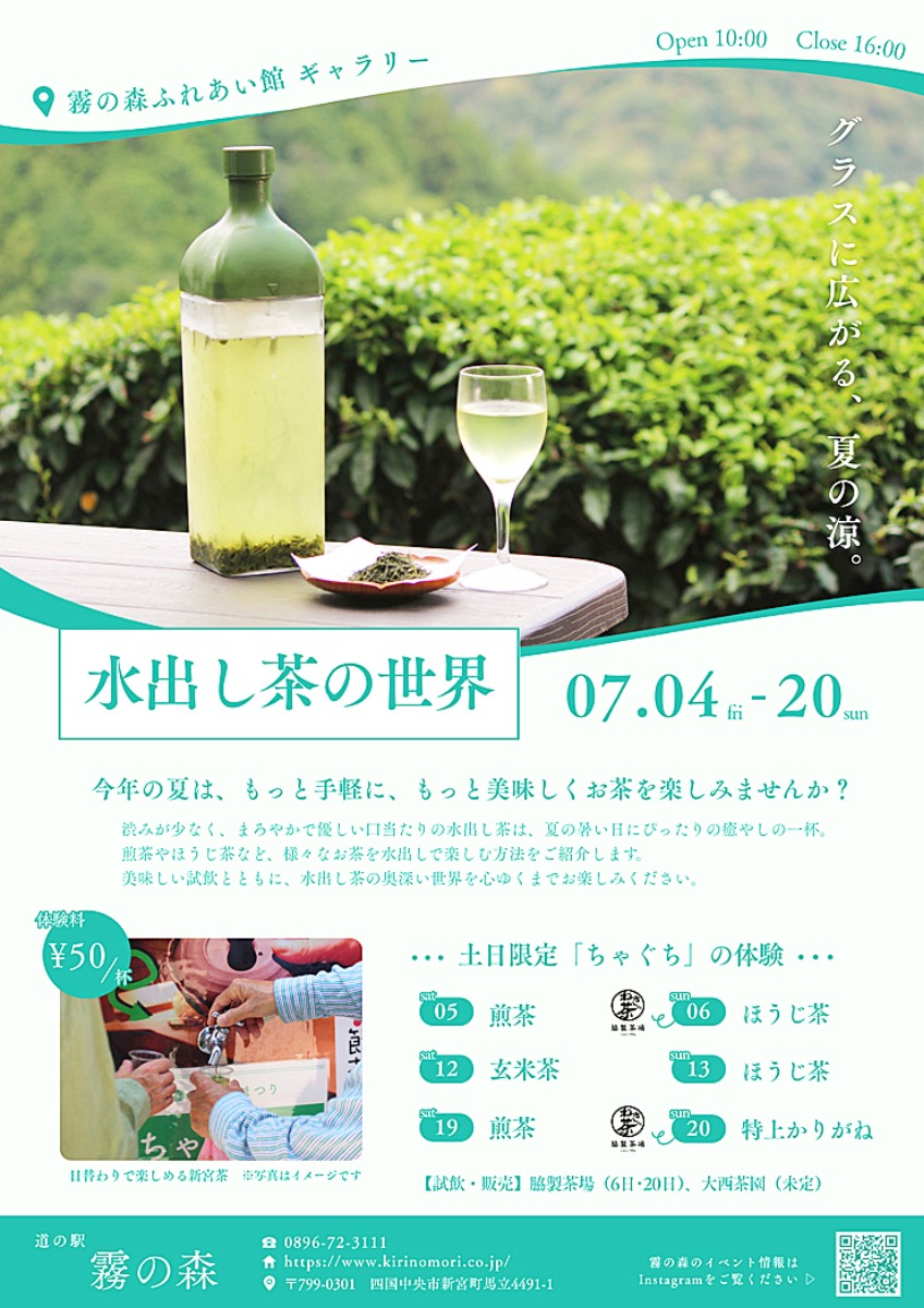 四国中央市にある霧の森ふれあい館内のギャラリーでは、2025年7月4日(金)から7月20日(日)の期間『水出し茶の世界』企画展示が開催されます。