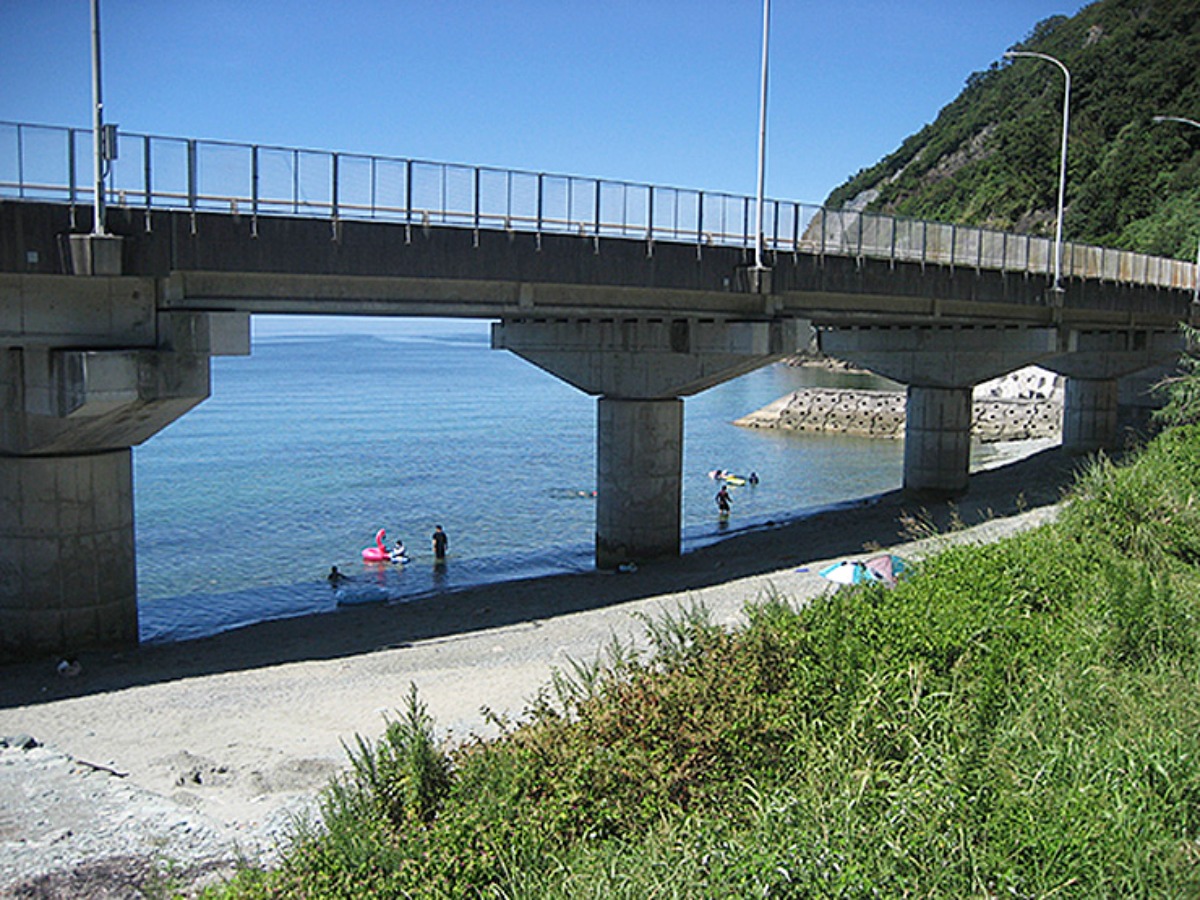さらに、国道378号線「夕やけこやけライン」沿いには、「須沢海水浴場」もあります。橋の下に浜辺がある珍しい海水浴場で、日陰ができるため、パラソルなどの用意がなくても快適。バーベキューを楽しむのにもおすすめの穴場スポットです。