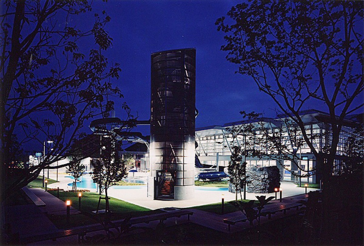 大きなウォータースライダーは建物の外からも見えるサイズ!