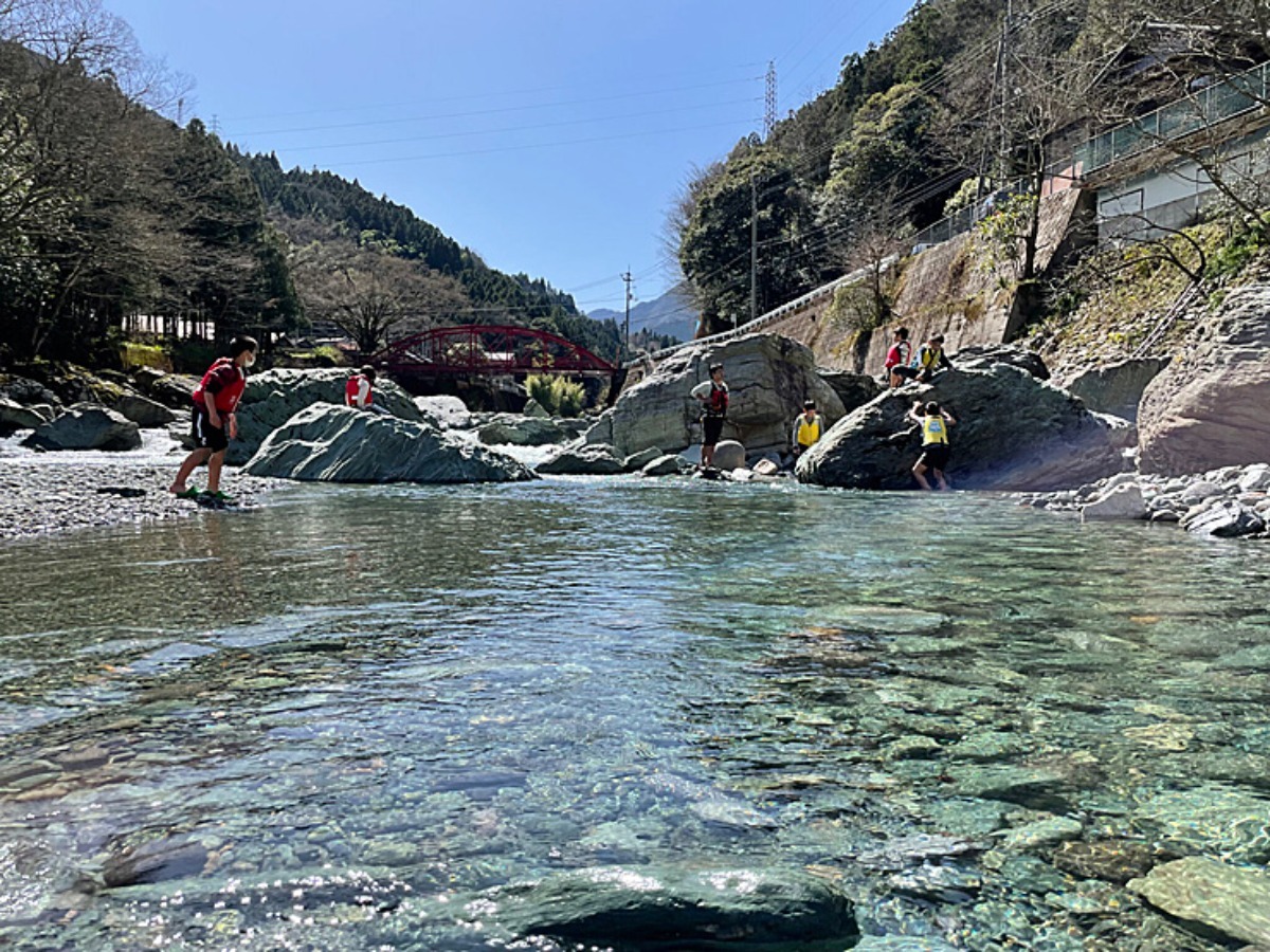 会場のすぐ横には透明度抜群の川が流れ、食後には川遊びも楽しめます。