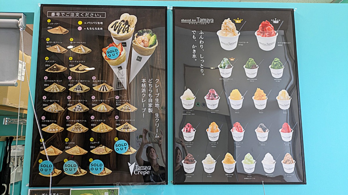 かき氷目的で行ったんですけど、クレープのメニュー表を見てたらクレープも食べたくなっちゃいました。
