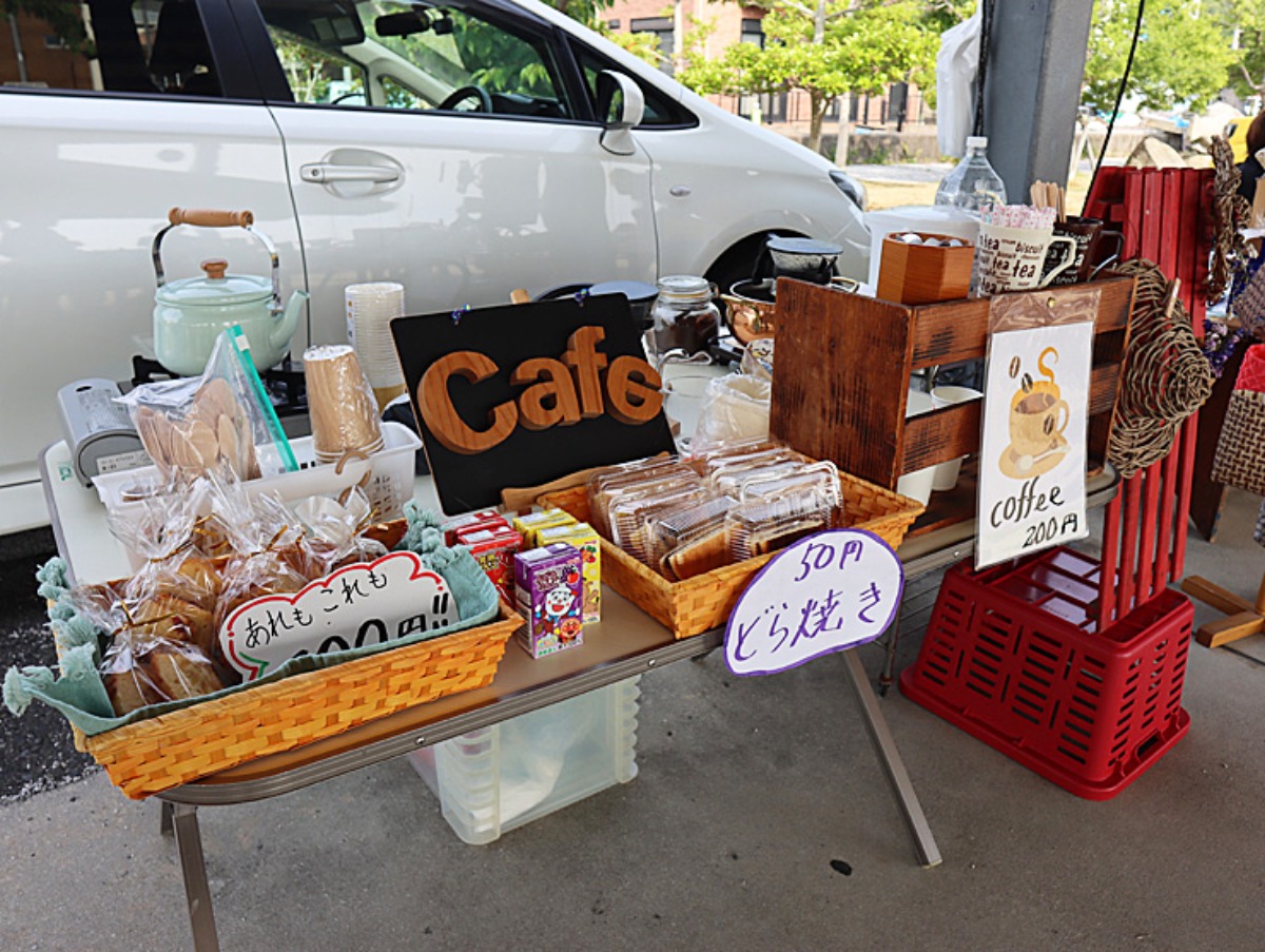 また、朝市と同時開催の「百笑市(ひゃくしょういち)」では、朝8時頃から新鮮な野菜やコーヒー、手作りお菓子なども並びます。