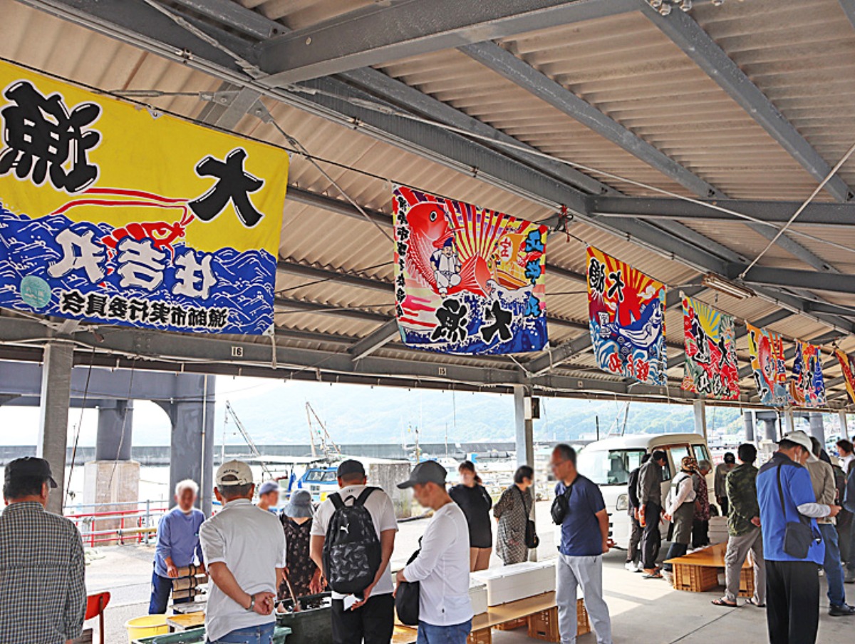 愛媛県今治市の大島に位置する宮窪漁港では、毎月第1日曜日に「宮窪の漁師市」が開かれています。