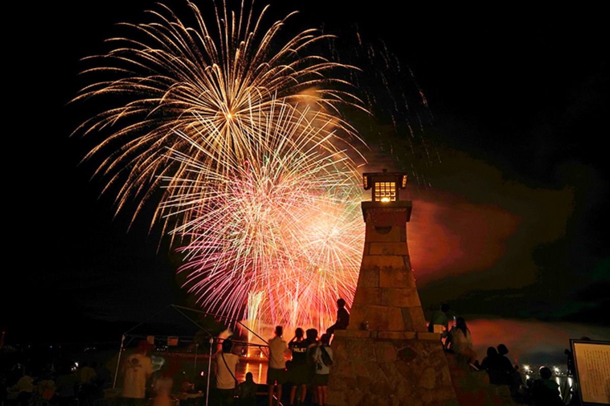 伊予彩まつりで最も注目を集めるのが、27日(日)20時から伊予港防波堤で打ち上げられる花火大会です。