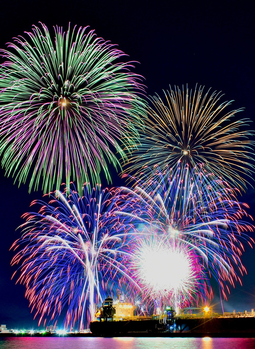 20時から1時間にわたり、色鮮やかな大輪が夜空を埋め尽くし、開放的な港町の雰囲気とともに夏の風物詩を満喫できます。