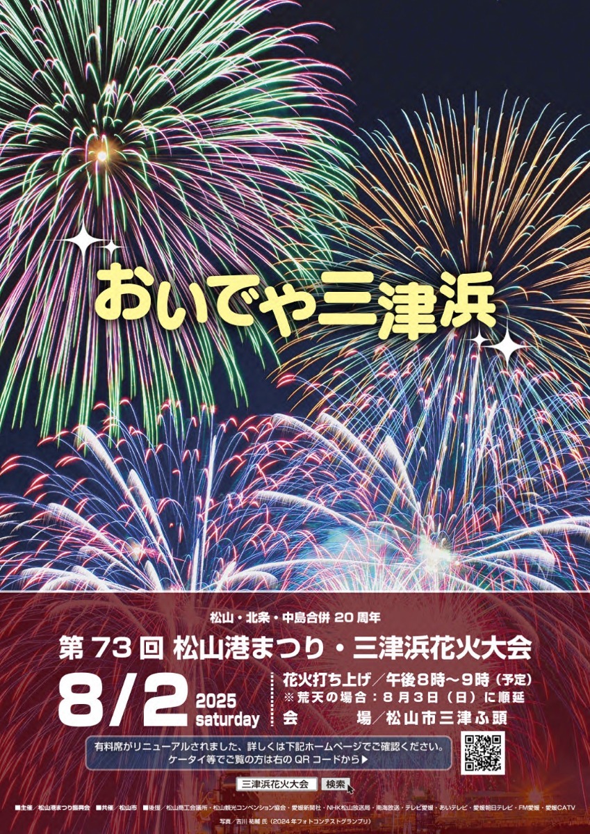 愛媛県松山市の夏を代表する「第73回松山港まつり・三津浜花火大会」が、2025年8月2日(土)に三津ふ頭で開催されます。