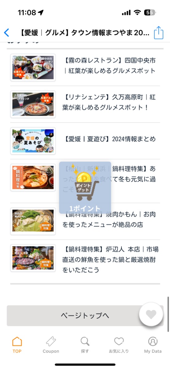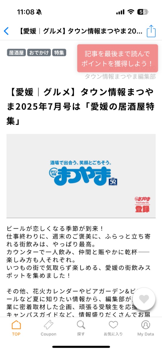 記事を読むたびにポイントが貯まるので、「えひめのあぷり」で情報を探すのがもっと楽しくなります!