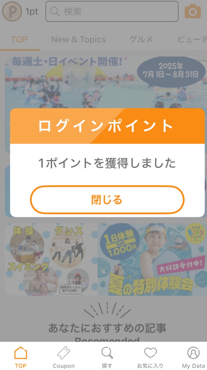 毎日のログイン以外に、配信されている記事を読むことで、さらにポイントがもらえます!