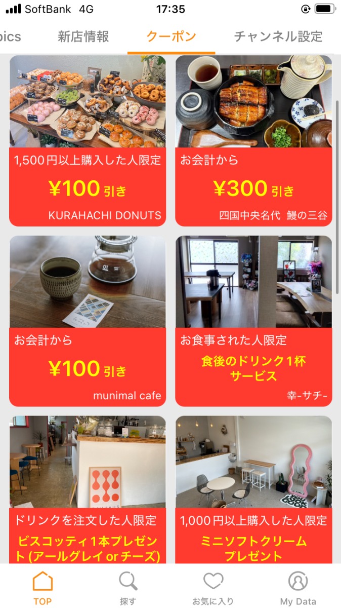 愛媛県内のお店のクーポンが掲載されているので、気になるお店に行くきっかけに♪