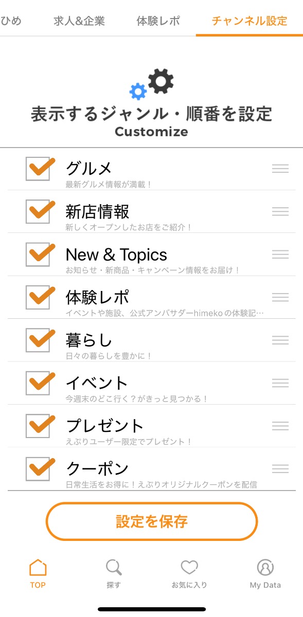 ここで、興味のある情報配信が追加できたり表示順の設定ができます!