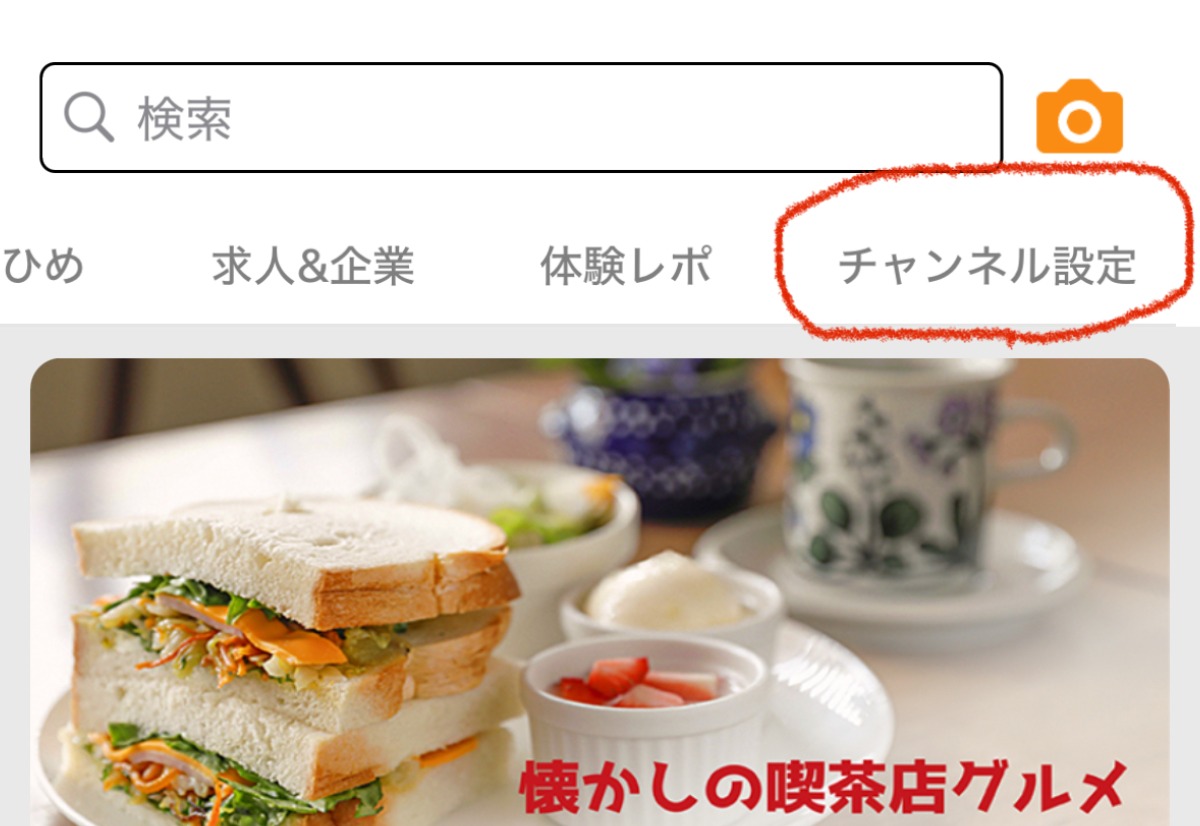 検索窓の下にあるチャンネルタブを右側にスライドさせると「チャンネル設定」があります。