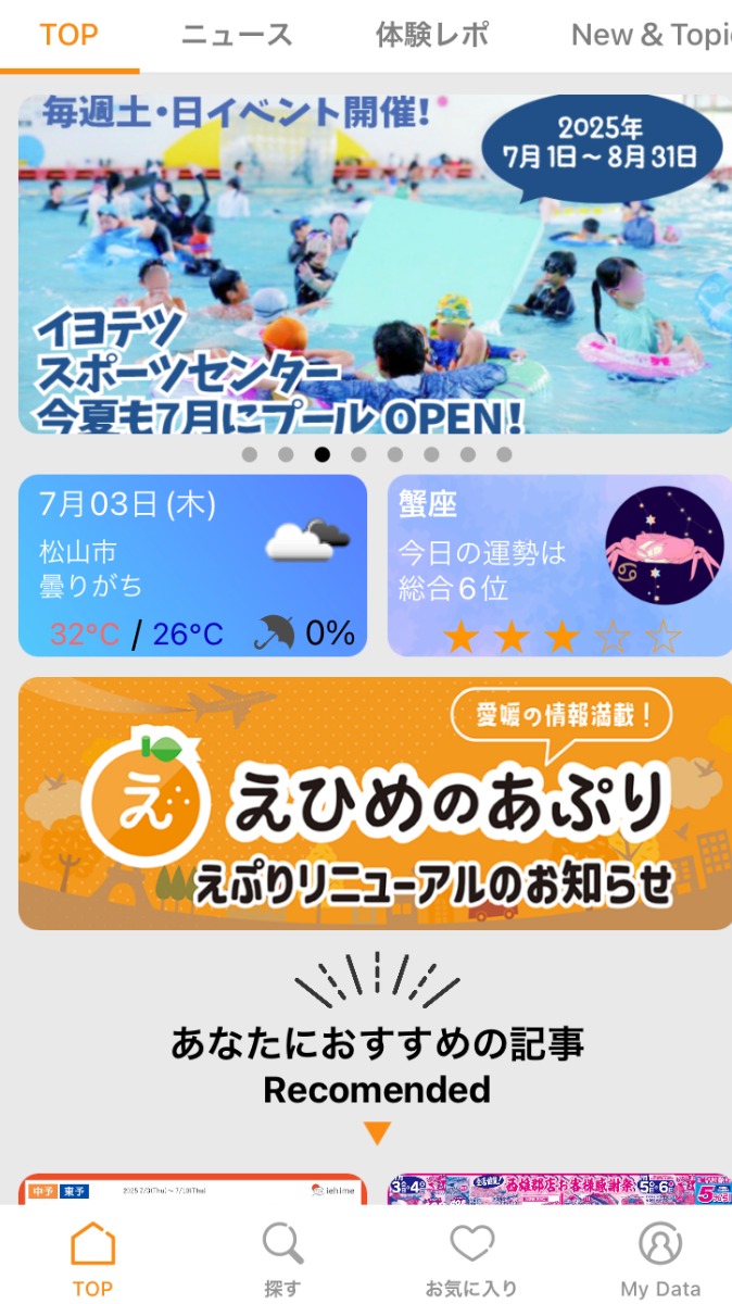 【注目】新しくなった「えひめのあぷり」でお得に愛媛の情報をゲット!