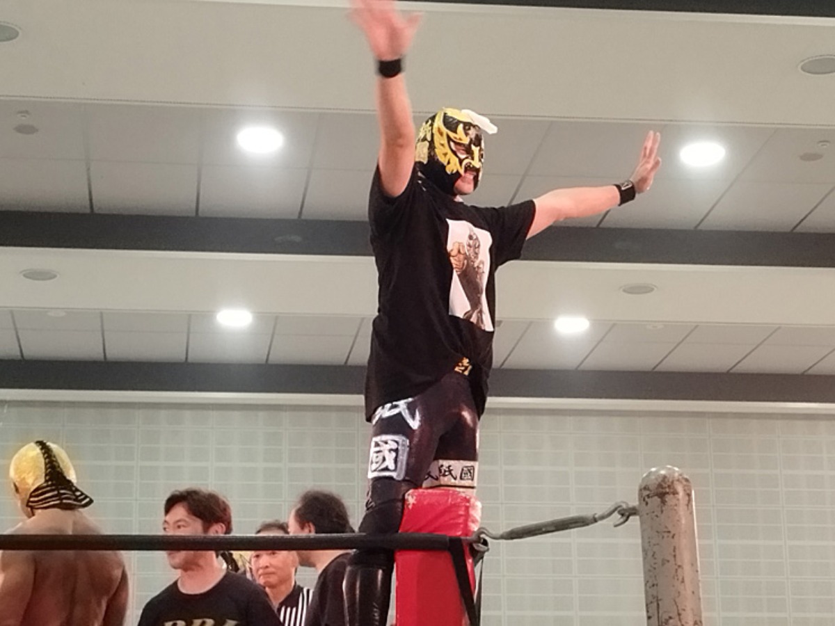 対戦相手は先日のビッグマッチで再びの極悪軍団「伊予魔神軍」入りを果たしたKURUSHIMA選手、そして土屋クレイジー選手の強力なタッグ。