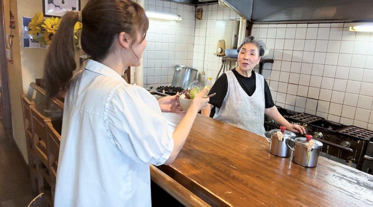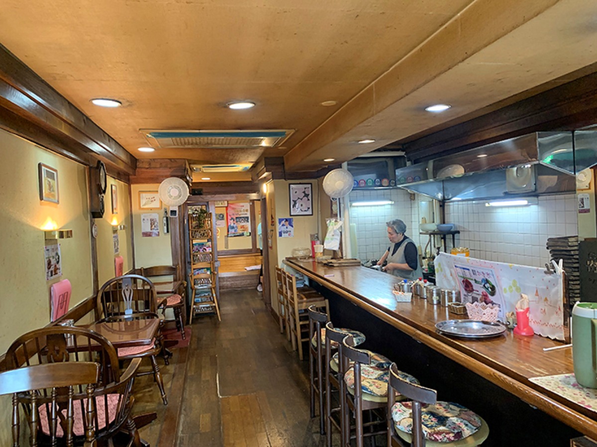 お客様から「ママさん」の愛称で慕われ、今年77歳とは思えないほど明るい笑顔と元気な接客で活気づく店内。