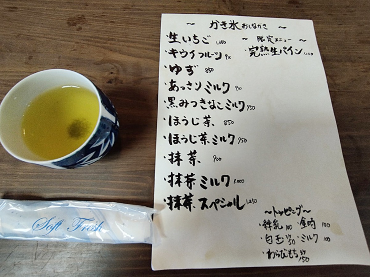 かき氷おしながきとご対面。どれにしようか悩む〜!