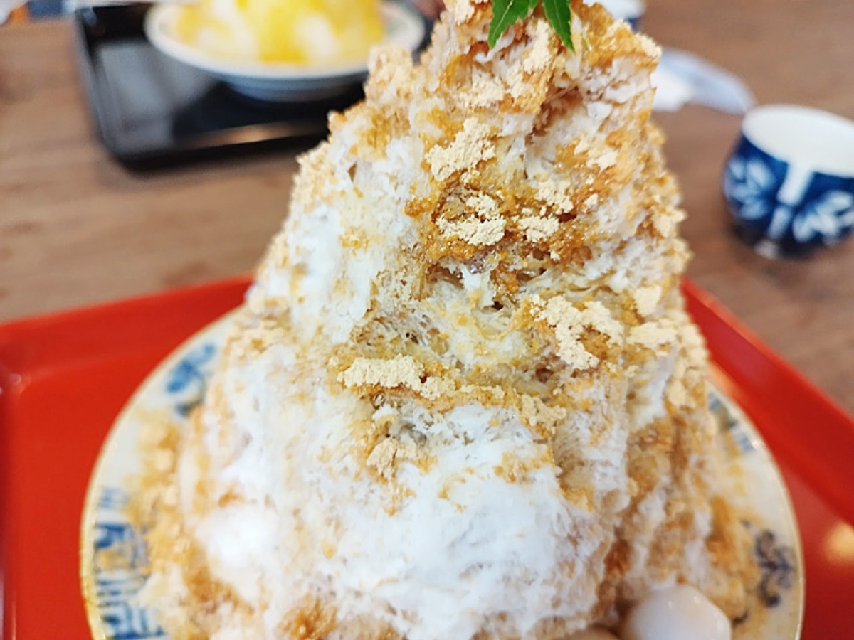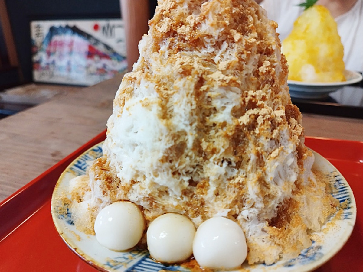 そしてお次にやってきたのは「黒みつきなこミルク」のかき氷950円。どどん!とボリュームたっぷりの氷に贅沢に注がれた黒みつときなこ。さらにはミルクも絶妙な割合でからめられていて、スプーンを口に運ぶ手が止まりませんでした!