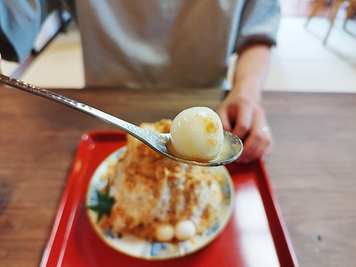 黒みつきなこはゆずとは対照的にシャリシャリふわっとした氷がきなこと黒みつとの愛称もバッチリで、甘党の自分には格別のご褒美タイムでした。トッピングの白玉だんごも3個で50円とお得な価格で追加できるのでおすすめですね。練乳や金時、わらび餅もトッピングできるようです。