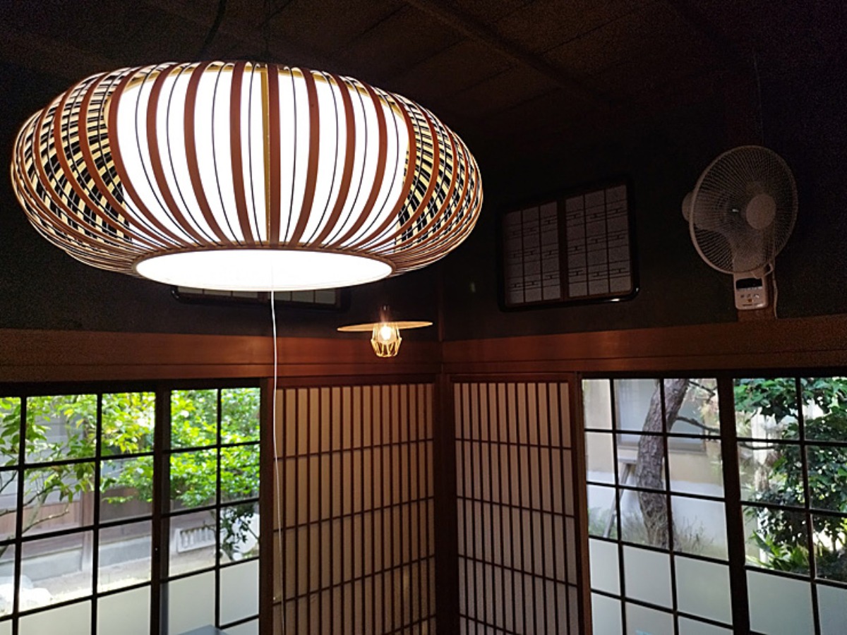 席は大人数でもOKなテーブル席の他、窓際で風景を楽しめる2人席もあり、ゆったりと落ち着いて過ごせる空間。照明も和テイストがふんだんに散りばめられた仕様で、思わず見入ってしまうような珍しいものばかり。昔ながらの扇風機が回っているところもなんだか昭和の原風景を体感しているような気持ちにさせられますね。