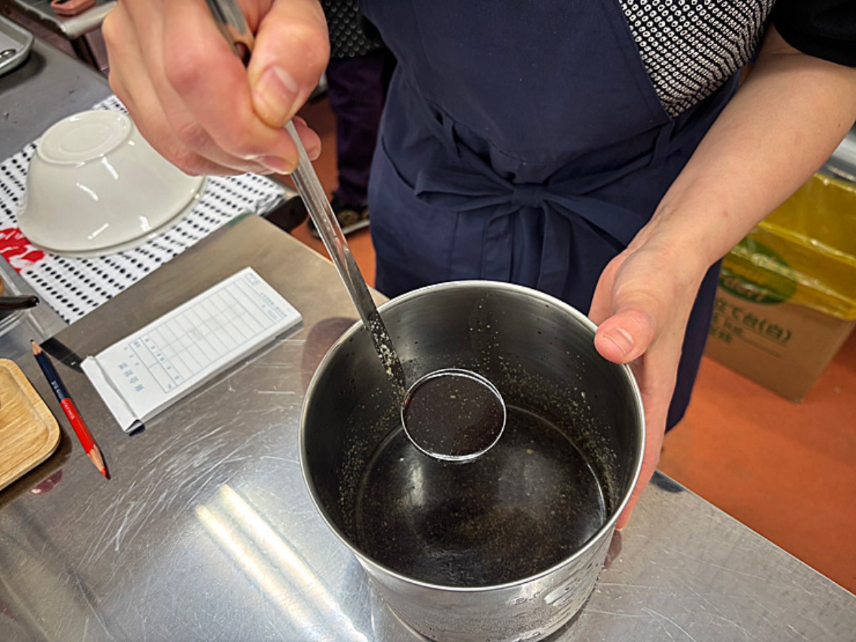 秘伝の醤油ベースのスープです。地元の老舗、二宮醸造さんの「久万山醤油(濃口)」と「久万山かけ(だし)醤油」を掛け合わせています。鶏ガラや他の出汁と掛け合わせてみたりと、色々な組み合わせで試行錯誤し完成しました。