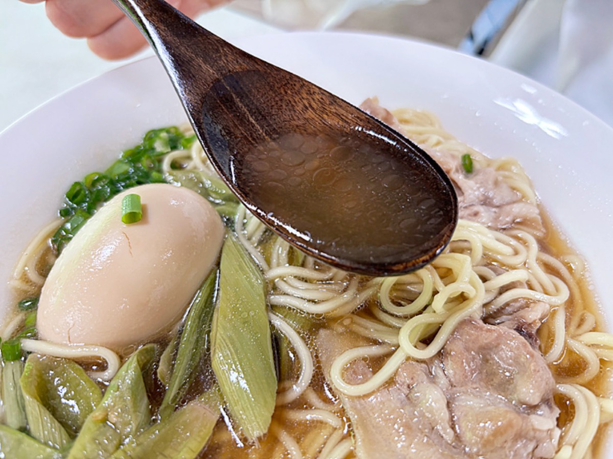まずは久万山醤油のスープから。主張しすぎないのに、しっかりとお醤油の味が感じられ、優しい甘さと旨みのバランスが抜群!素材の旨味を引き出しています。