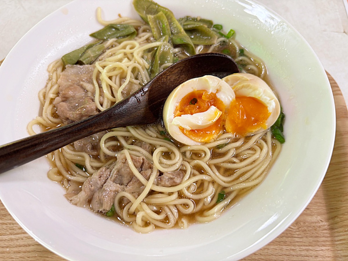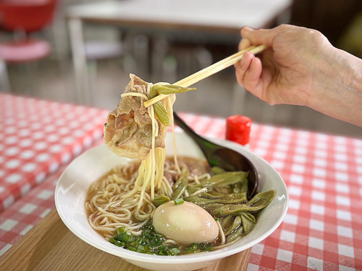 イタドリと豚肉、麺、煮卵、全てにスープの味がしっかり染み込んでいます。生麺のもちもち感に、いたどりのコリコリ食感、豚肉の旨みが加わって食べた瞬間の美味しさといったら…思わず唸ってしまうほど。最高です。