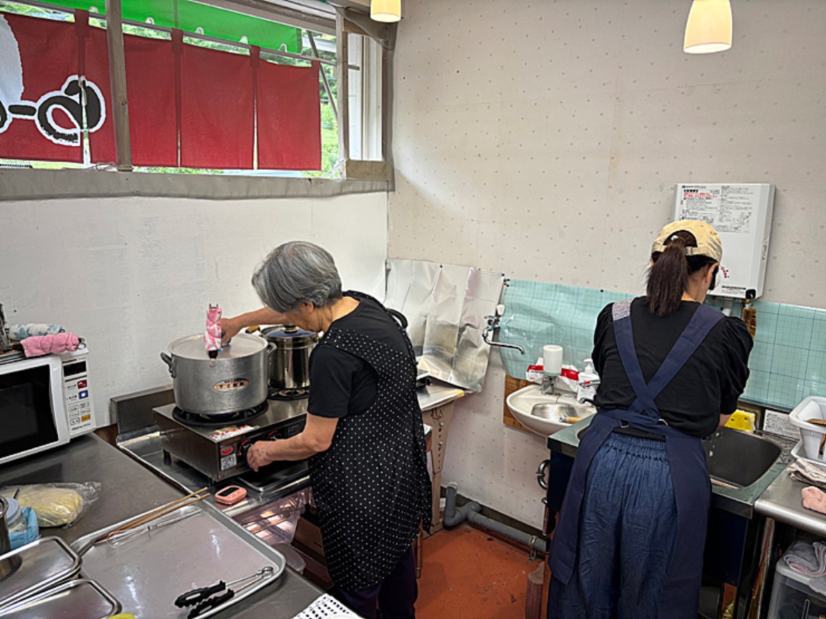 駅ラー用に作られた小さな厨房では、お義母さまと高山さんが並び、心を込めて駅ラーを作ります。