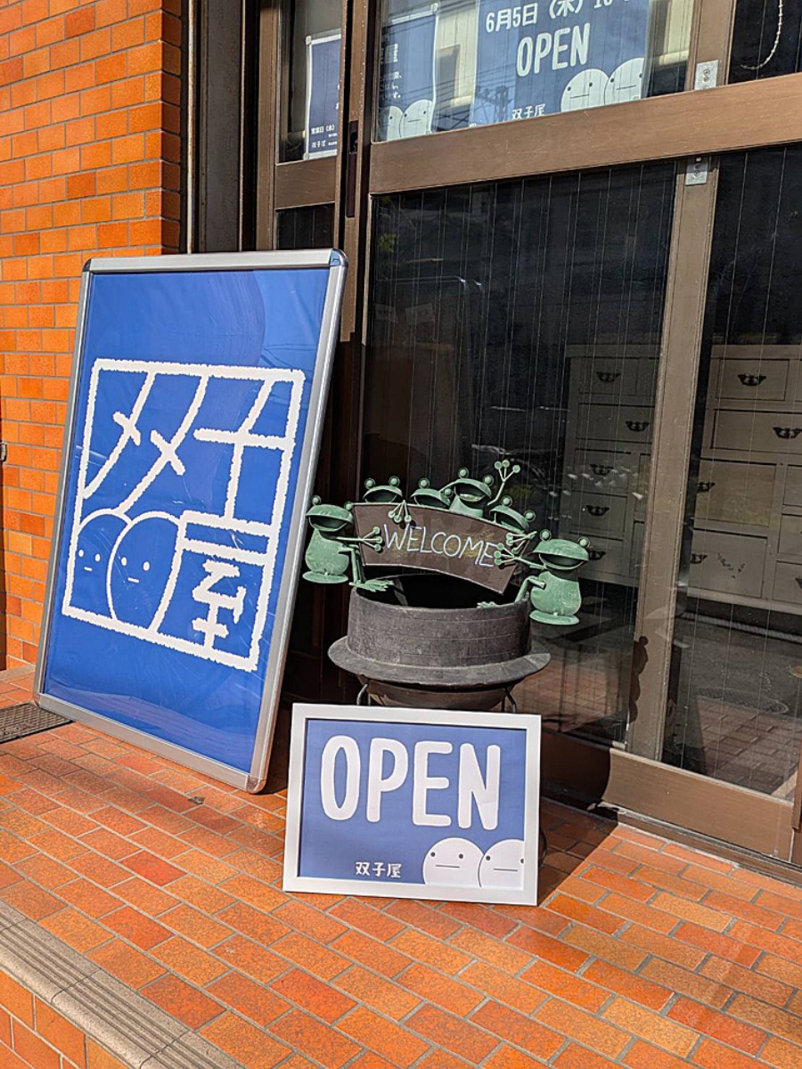 「双子屋」のロゴは、店主の双子の娘さんが描いたという心温まるストーリー付き。