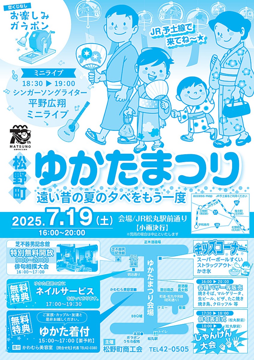 愛媛県北宇和郡松野町を代表する夏の風物詩「ゆかたまつり」が、2025年7月19日(土)にJR松丸駅前一帯で開催されます。