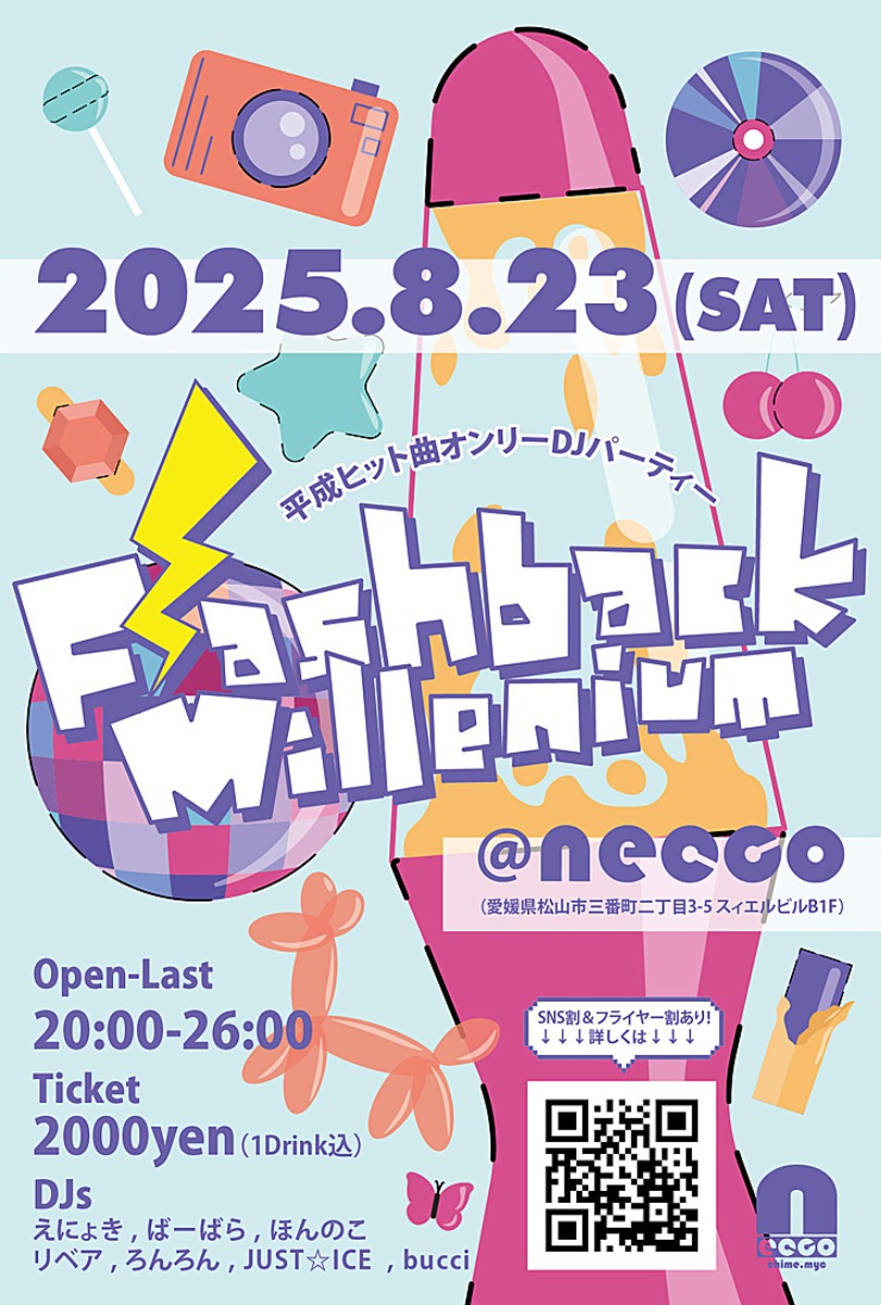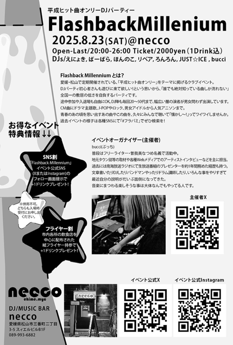 平成を代表するヒットソングだけを集めたDJパーティー「Flashback Millennium vol.3」が、今回は8月23日(土)の真夏の夜に開催!