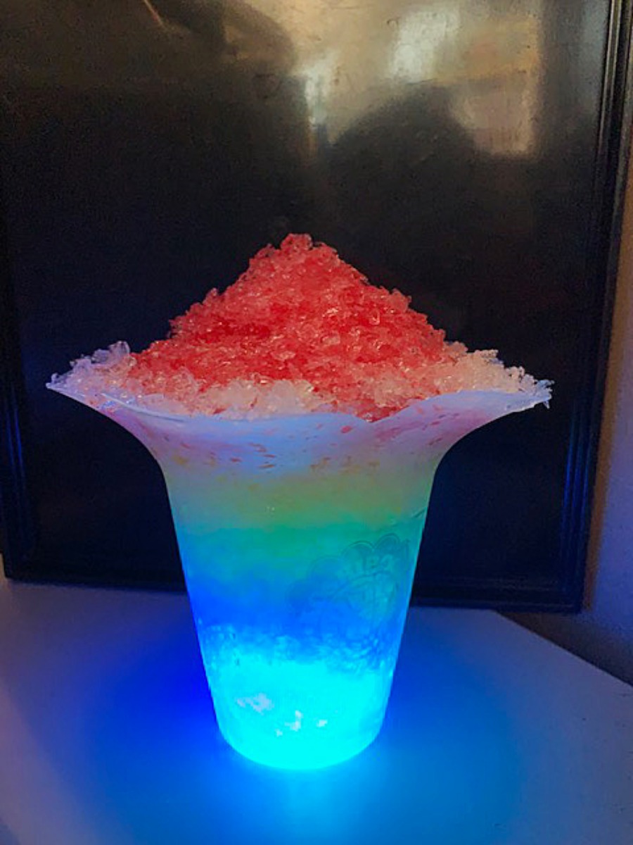 遊涼み会では、にぎやかな縁日ブースに光るかき氷も!