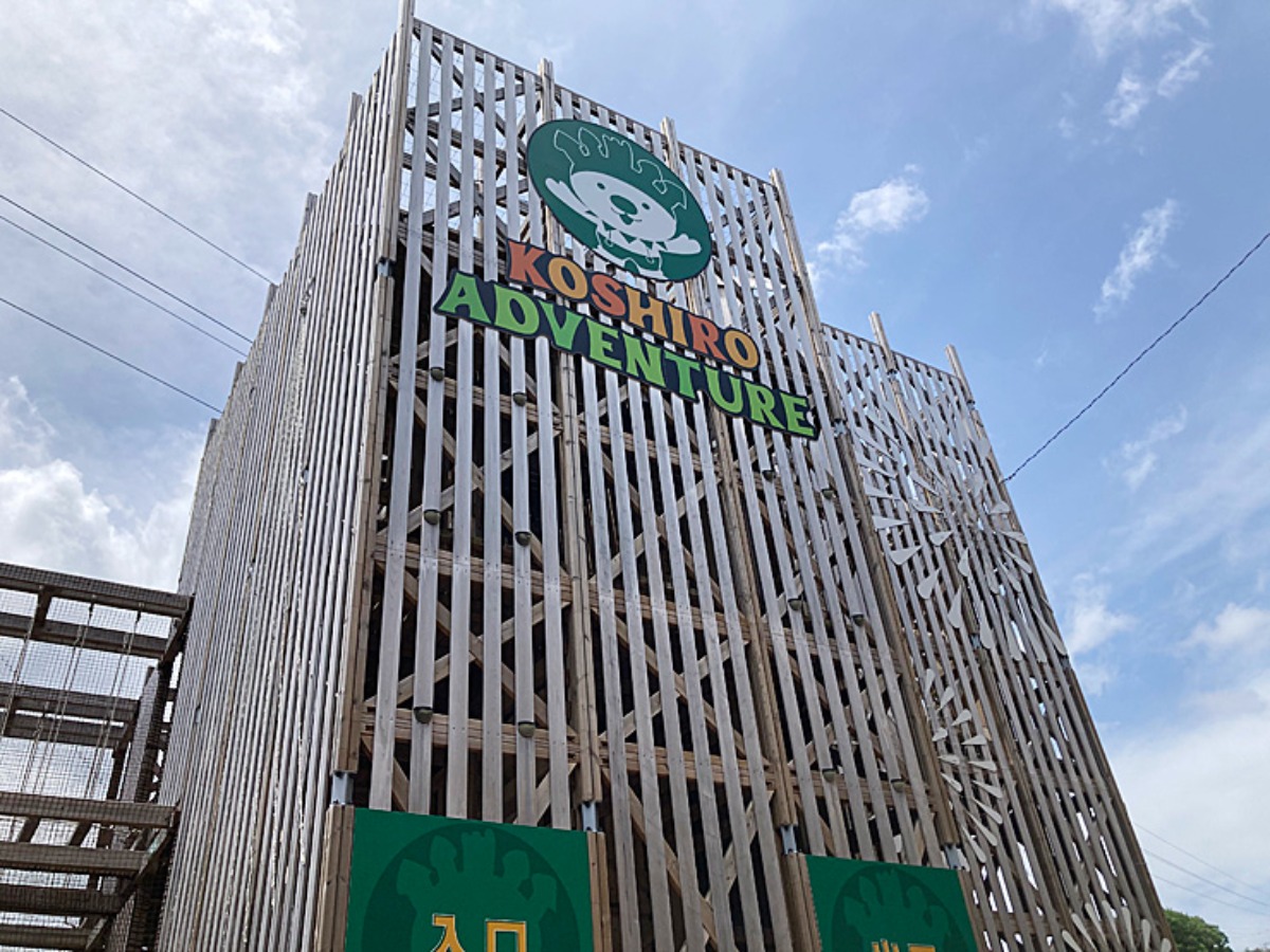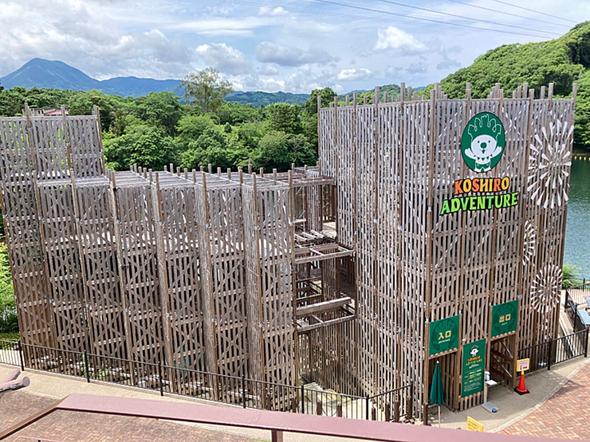 えひめこどもの城の屋外で、ひときわ目を引くのが巨大な木製アスレチック「コシロ・アドベンチャー」。