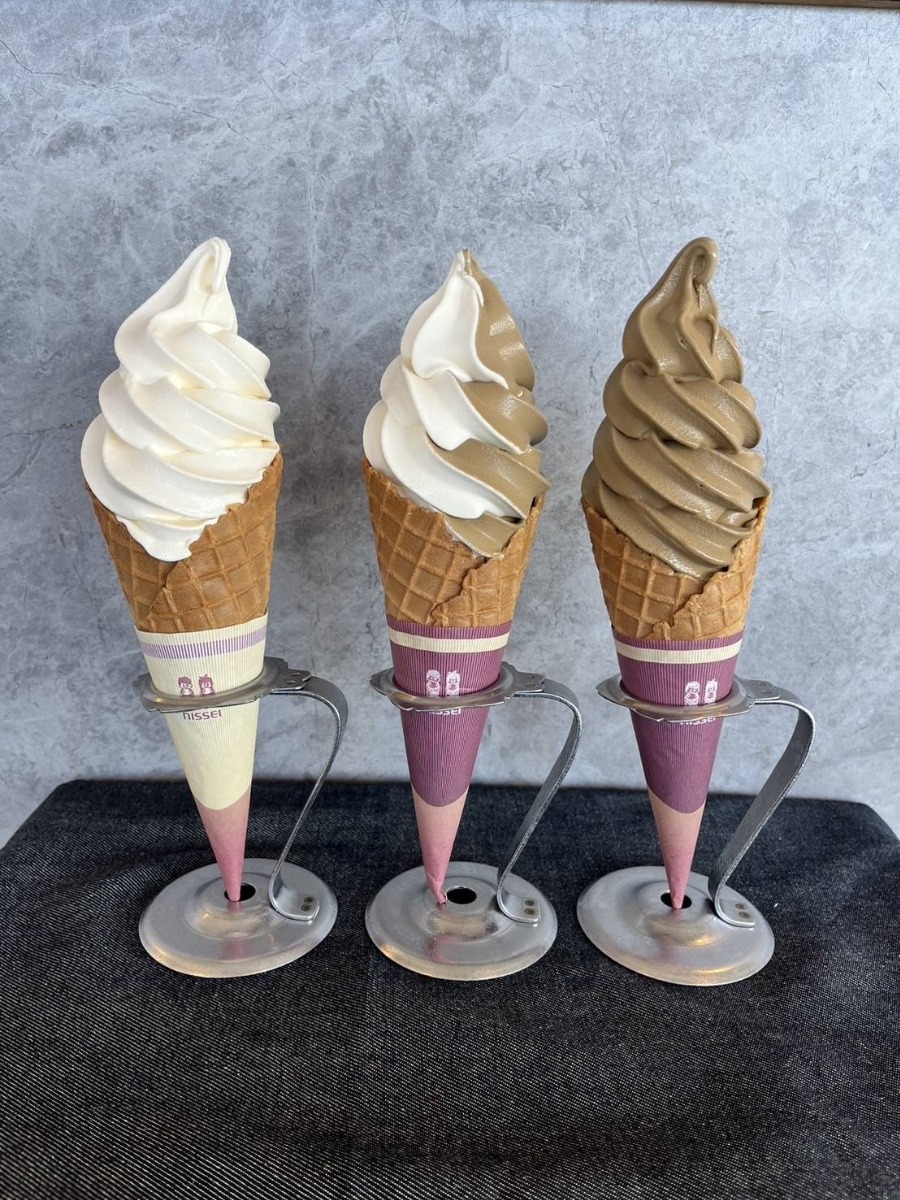 地元の新鮮な野菜や特産品が並ぶ「海山産直あさひさん」では砥部焼ソフトが人気です。